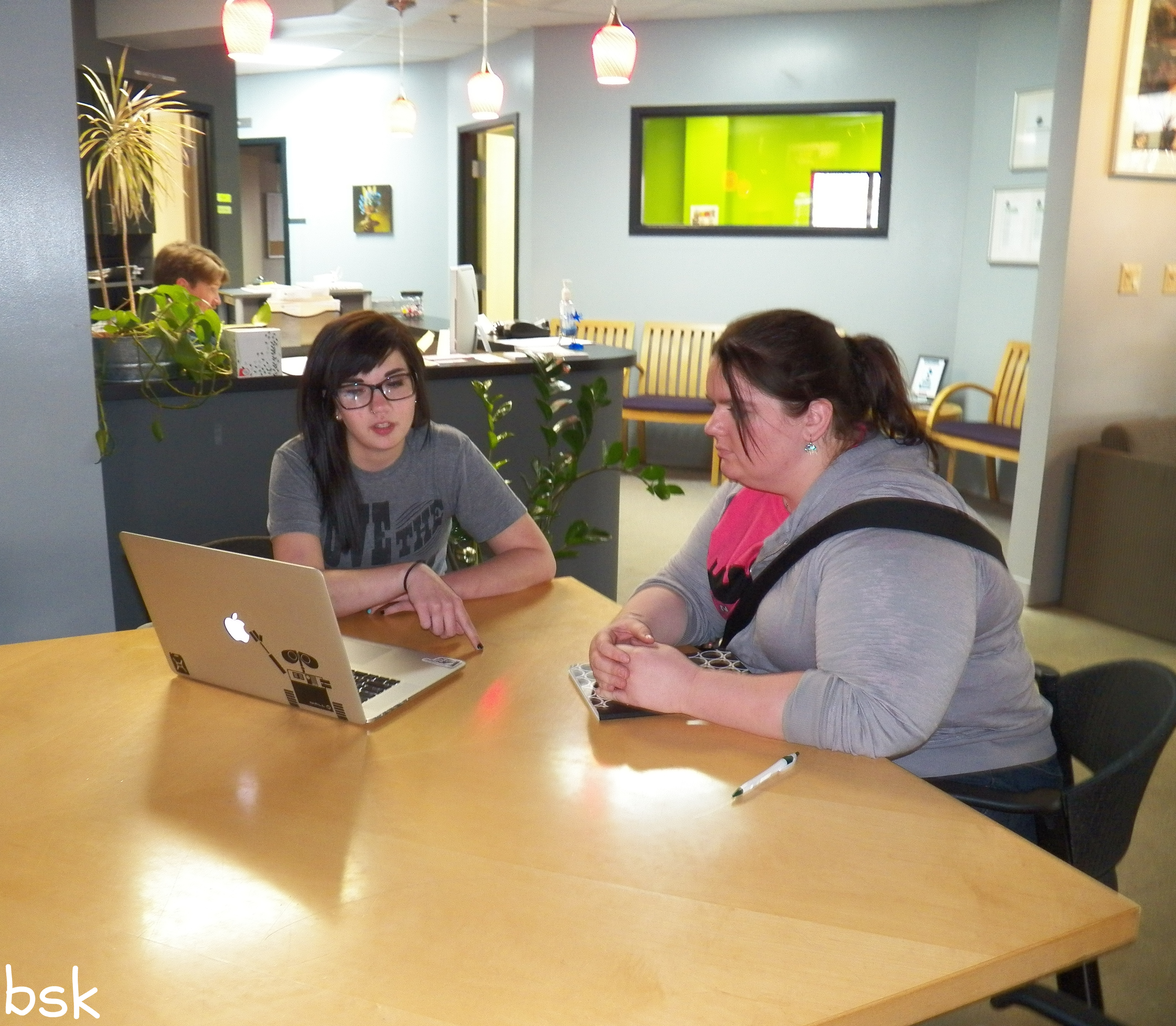 Hannah Isaacs (left) during her mock interview with Director of Communications, Betsy Woods.