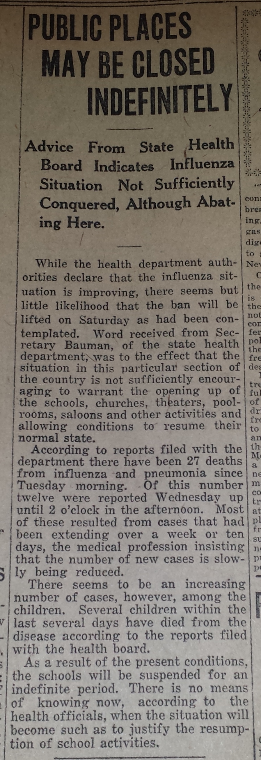 Dayton lived under restriction for weeks. Influenza funerals were restricted to immediate family only, and open caskets were only allowed if there was a glass shield provided.