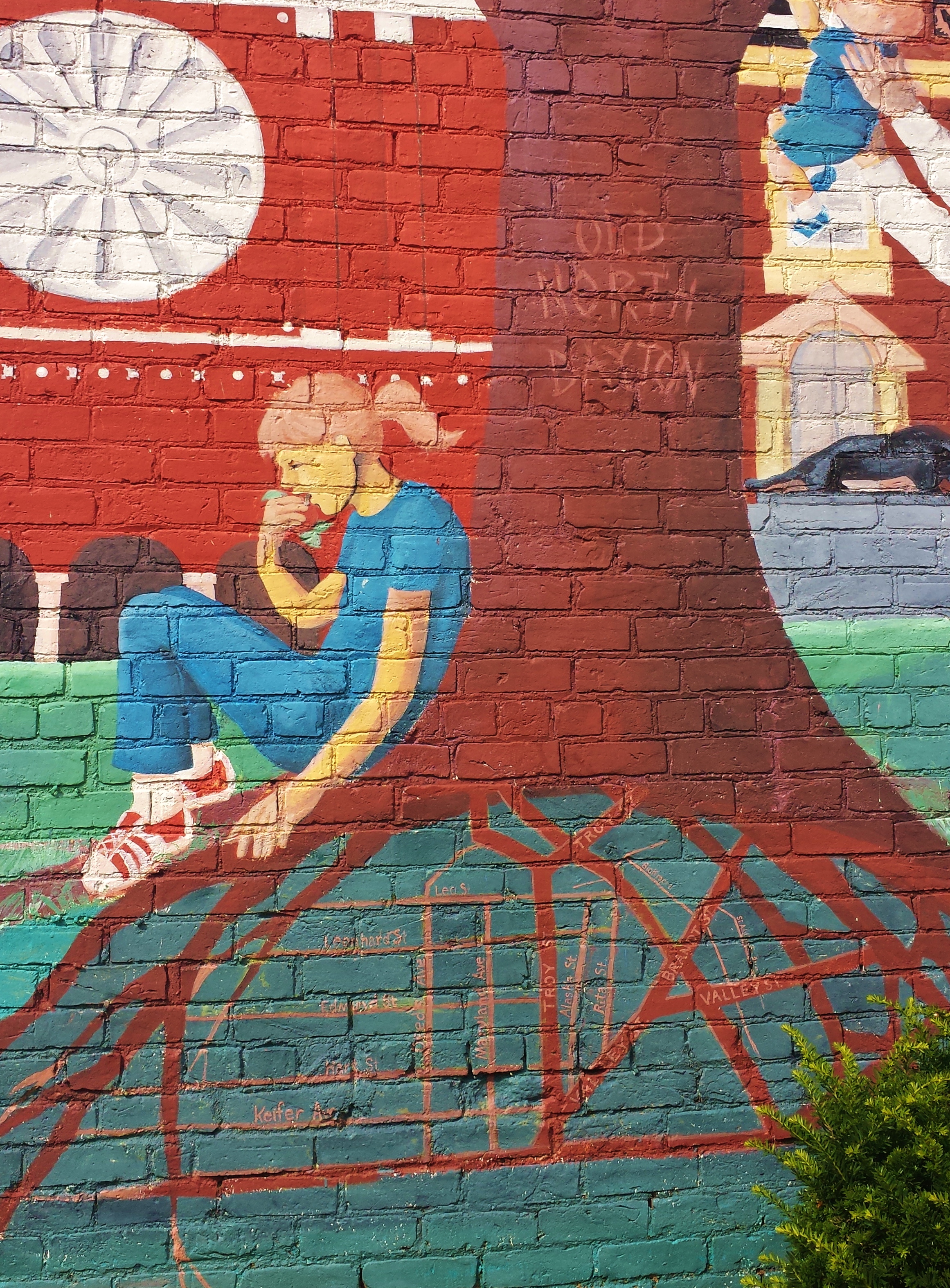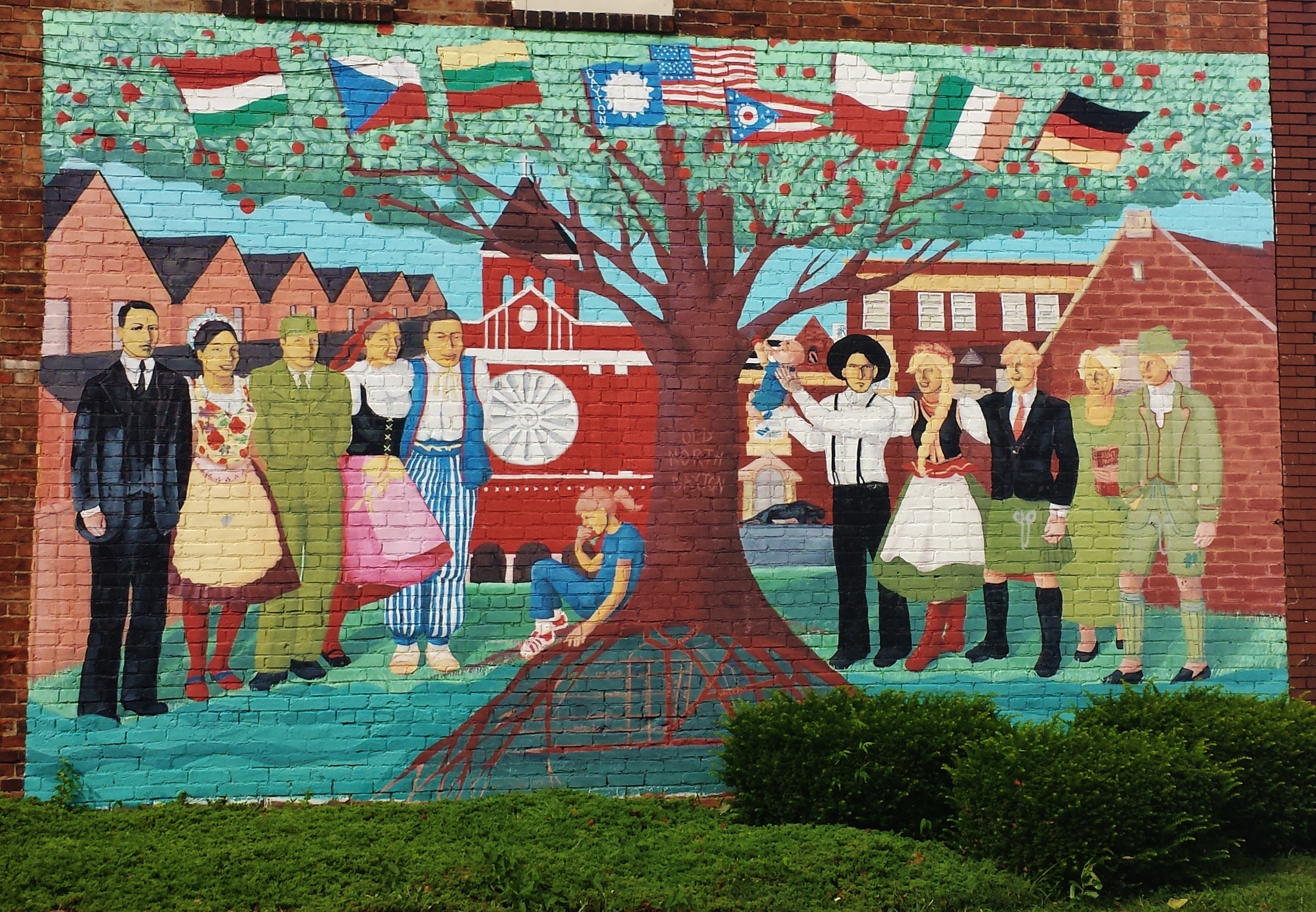 Mural by Kelly Jean Jordan in Old North Dayton on Valley Street. Tony Stein (third from left) is depicted with other notable residents. There is a map of Old North Dayton streets depicted in the roots.