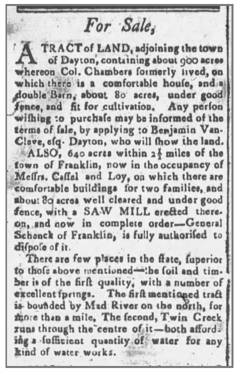 Published in the Western Spy and Miami Gazette (Cincinnati, Ohio) on December 25, 1805.